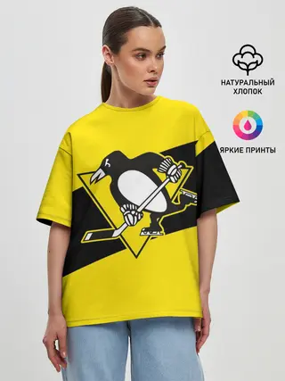 Женская футболка оверсайз / Питтсбург Пингвинз
