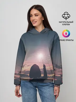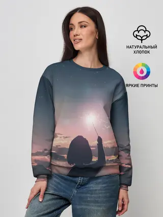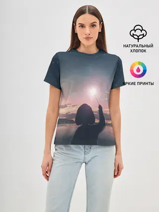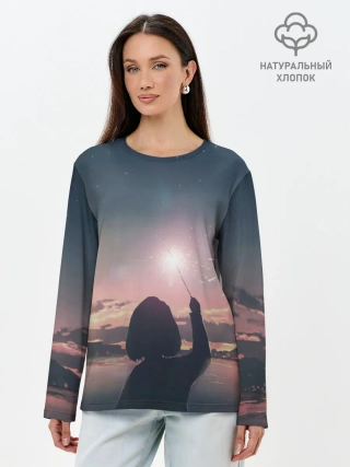 Лонгслив женский. Хлопок / девушка свечение волшебство