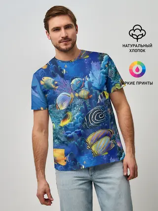Мужская базовая футболка / Коралловые рыбки