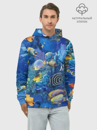 Худи мужской база хлопок / Коралловые рыбки