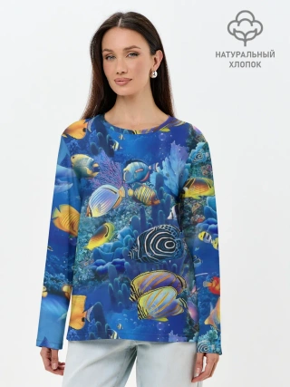 Лонгслив женский. Хлопок / Коралловые рыбки