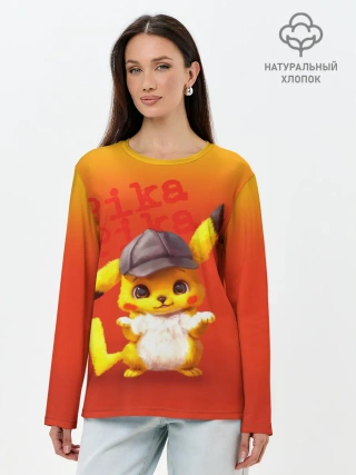 Лонгслив женский. Хлопок / Пика - пика оранжевый