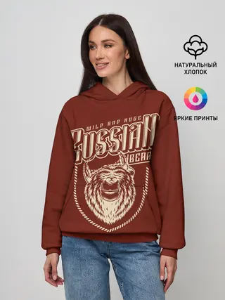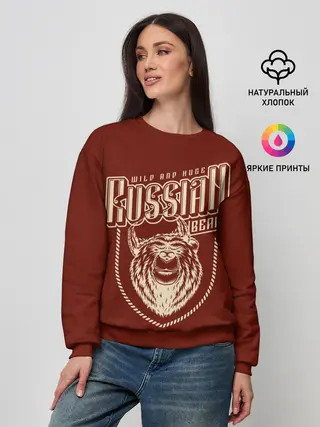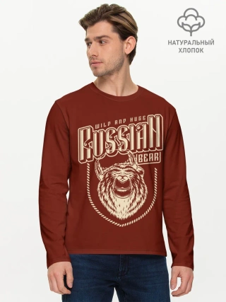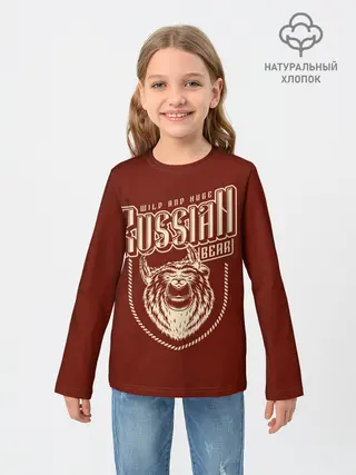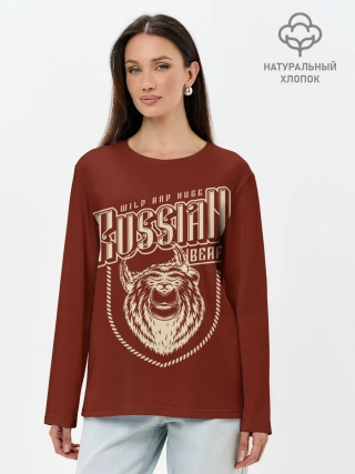 Лонгслив женский. Хлопок / Русский медведь в шапке