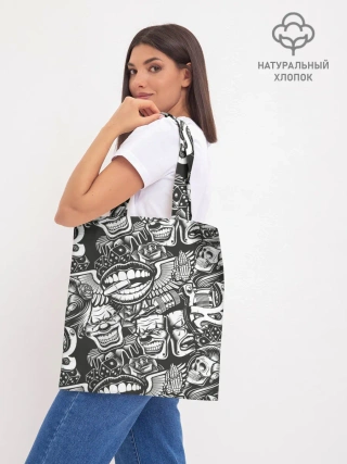 Мужская футболка оверсайз / Tattoo | BlackWhite