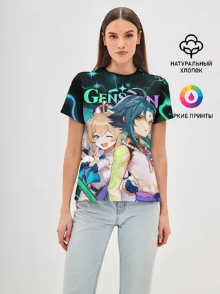 Женская базовая футболка / Сяо и Барбара, Genshin Impact