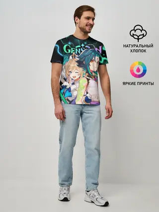 Мужская базовая футболка / Сяо и Барбара, Genshin Impact
