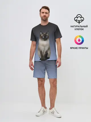 Мужская базовая футболка / сиамская милая кошечка