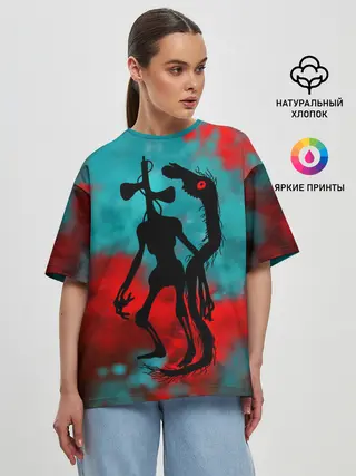 Женская футболка оверсайз / Сиреноголовый и Лошадь монстры