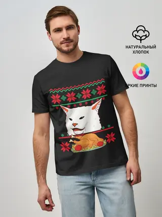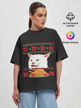 Мужская футболка оверсайз / Woman yelling at Cat meme