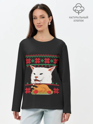 Лонгслив женский. Хлопок / Woman Yelling at Cat
