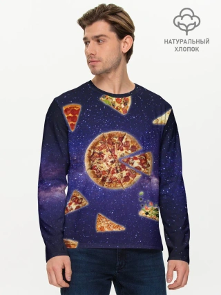 Мужской лонгслив базовый / Пицца в космосе