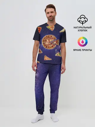 Мужская пижама с брюками / Пицца в космосе
