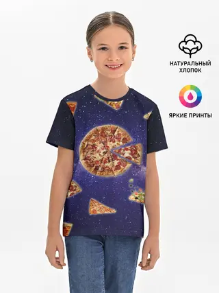 Детская базовая футболка / Пицца в космосе