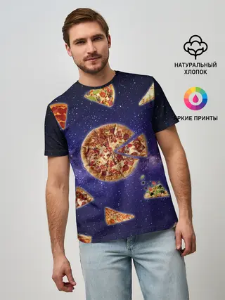 Мужская футболка оверсайз / Пицца в космосе