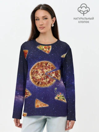 Лонгслив женский. Хлопок / Пицца в космосе