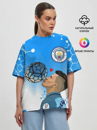 Женская футболка оверсайз / СЕРХИО АГУЭРО / МАНЧЕСТЕР СИТИ
