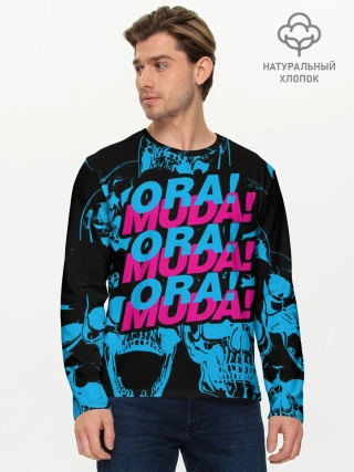 Мужской лонгслив базовый / Ора Муда синие черепа