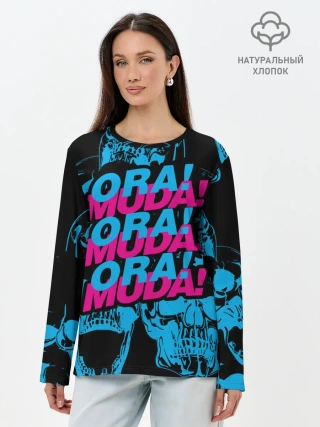 Лонгслив женский. Хлопок / Ора Муда синие черепа