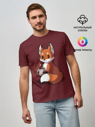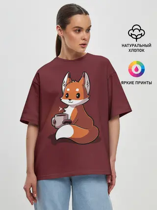 Мужская футболка оверсайз / акварельная лиса задумчивости