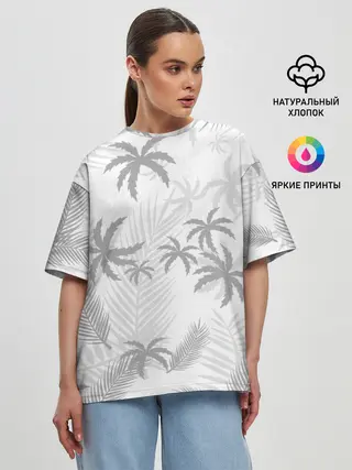 Женская футболка оверсайз / ПАЛЬМЫ | ЛЕТО | TROPICAL