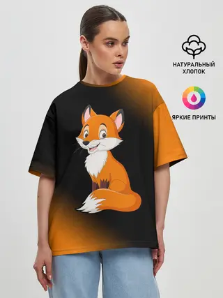 Женская футболка оверсайз / Лисичка - Градиент
