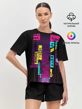 Женская пижама с шортами / Неоновый город