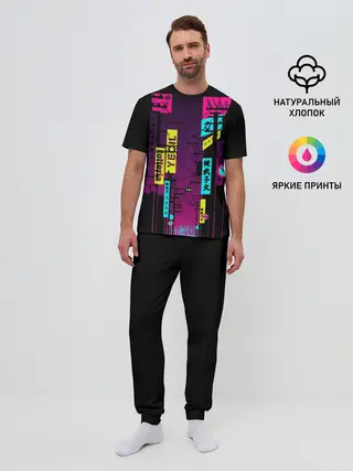 Мужская пижама с брюками / Неоновый город