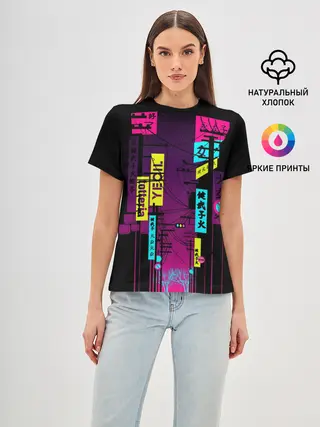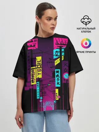 Женская футболка оверсайз / Неоновый город