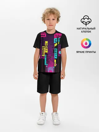 Детская пижама с шортами / Неоновый город