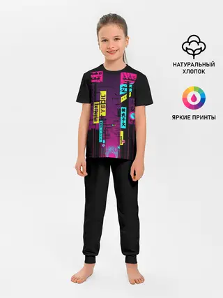 Детская пижама с брюками / Неоновый город