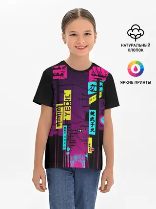 Детская базовая футболка / Неоновый город