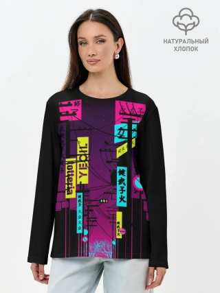 Лонгслив женский. Хлопок / Неоновый город