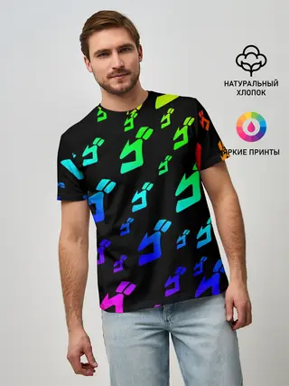 Мужская футболка оверсайз / Радужный Паттерн Лого ДжоДжо