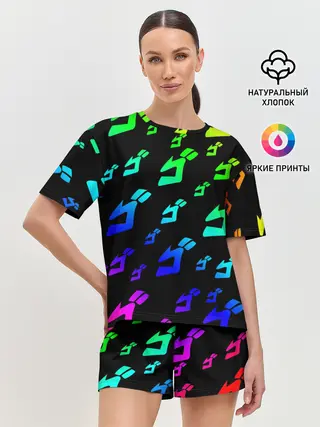 Женская пижама с шортами / Радужный Паттерн Лого ДжоДжо
