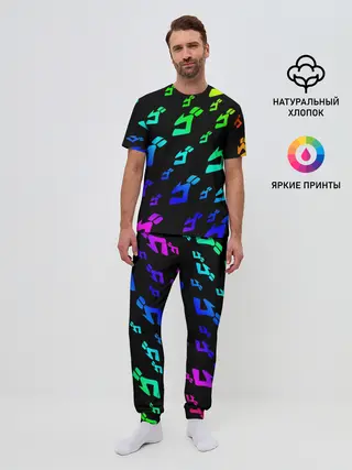 Мужская пижама с брюками / Радужный Паттерн Лого ДжоДжо
