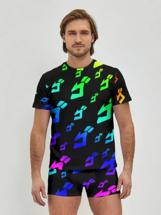 Мужские трусы с футболкой / Радужный Паттерн Лого ДжоДжо