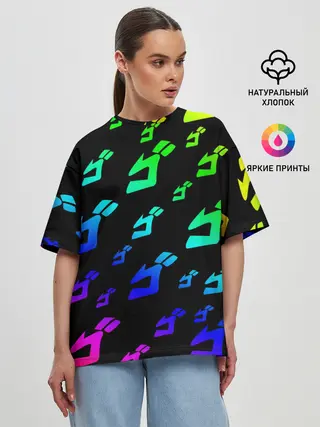 Женская футболка оверсайз / Радужный Паттерн Лого ДжоДжо