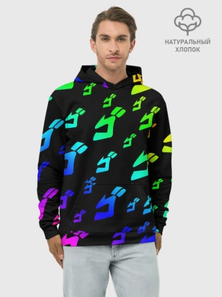 Худи мужской база хлопок / Радужный Паттерн Лого ДжоДжо