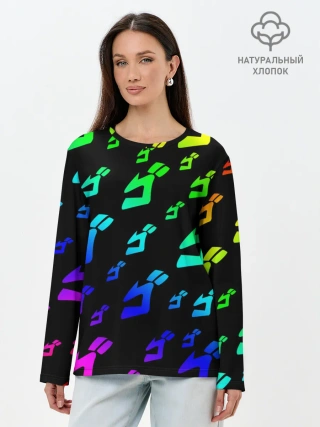 Лонгслив женский. Хлопок / Радужный Паттерн Лого ДжоДжо