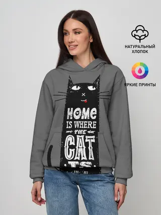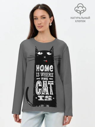 Лонгслив женский. Хлопок / Дом там, где твой кот