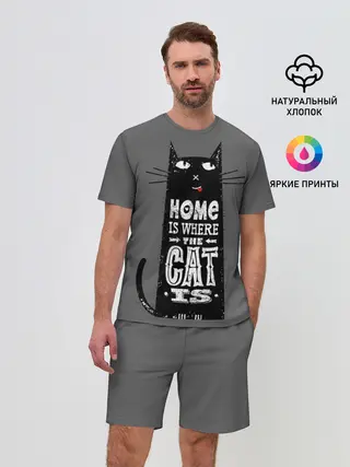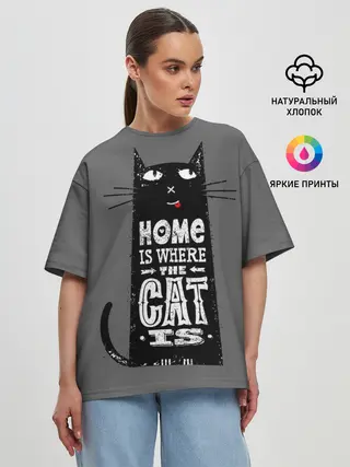 Мужская футболка оверсайз / Хэллоуинская кошка