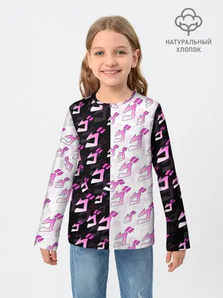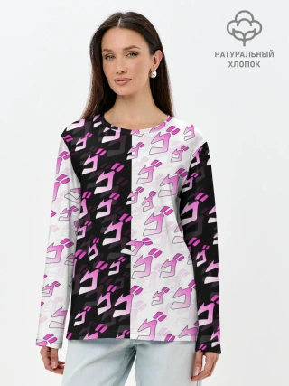 Лонгслив женский. Хлопок / Розовые джоджо на чернобелом