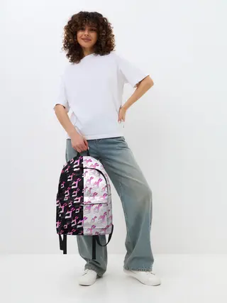 Рюкзак джинсовый / Розовые джоджо на чернобелом
