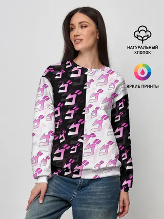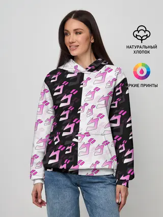 Женская футболка оверсайз / Розовые джоджо на чернобелом