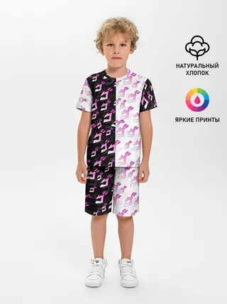 Детская пижама с шортами / Розовые джоджо на чернобелом