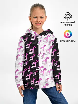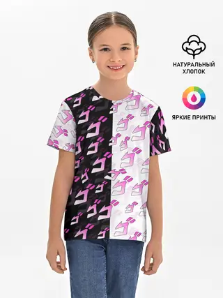 Детская базовая футболка / Розовые джоджо на чернобелом