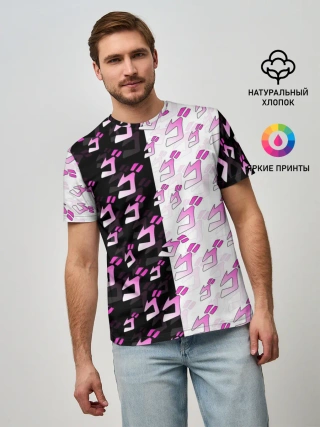 Мужская базовая футболка / Розовые джоджо на чернобелом