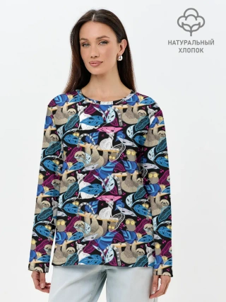 Лонгслив женский. Хлопок / Ленивцы и Лемуры