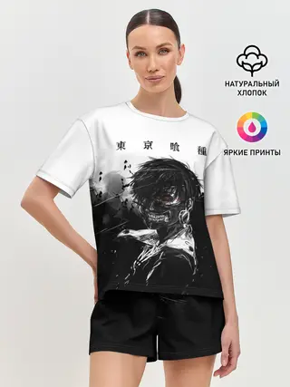 Женская футболка оверсайз / Канеки Кен черно-белый
