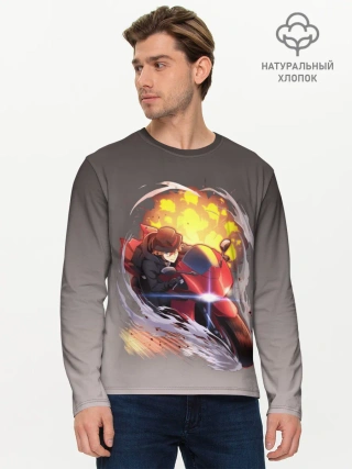 Мужской лонгслив базовый / Чуя Накахара на мотоцикле взрыв